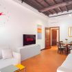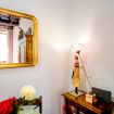 L’appartamento gode di una tranquilla vista su un cortile interno, ideale per rilassarsi dopo una giornata tra monumenti e meraviglie. Il pavimento in marmo o piastrelle, la presenza di soluzioni anallergiche e l’arredo sobrio ma raffinato creano un’atmosfera calda e accogliente.