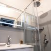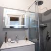 Il bagno è moderno e spazioso, con una doccia dalle linee essenziali, asciugamani di alta qualità e un set di cortesia per gli ospiti. In tutta la casa troverai un sistema di aria condizionata che garantisce una temperatura ideale in ogni stagione.